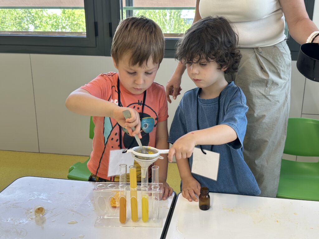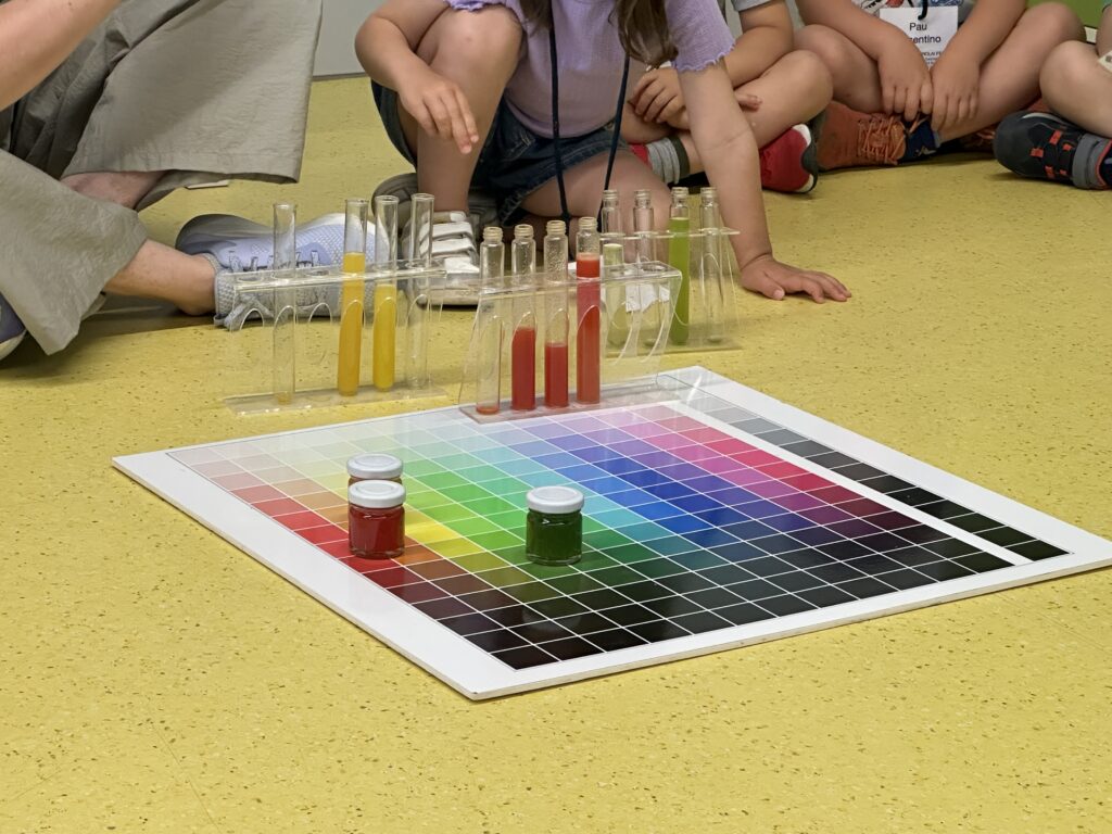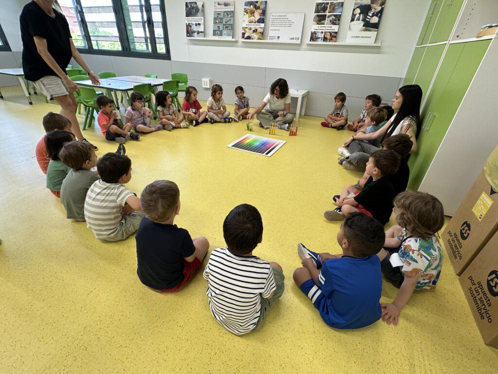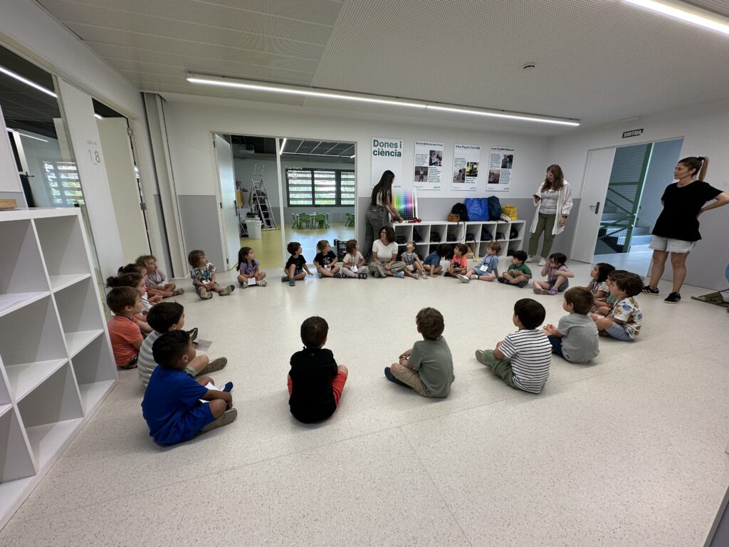Després hem pogut entrar a l’espai d’experimentació i moure’ns de forma lliure provant les diferents propostes i activitats. Ha estat divertidíssim, era com un espai de ciència de l’escola però a lo gran! Mireu…