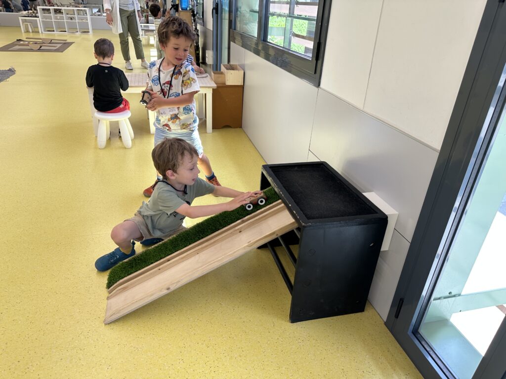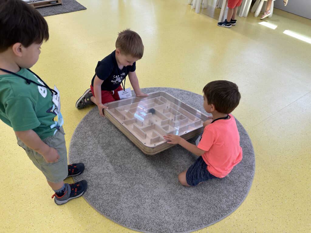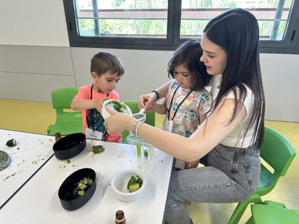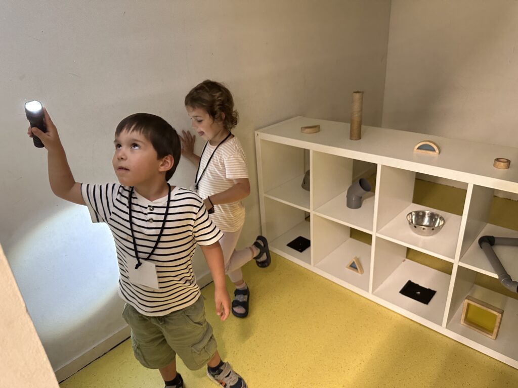 Després hem pogut entrar a l’espai d’experimentació i moure’ns de forma lliure provant les diferents propostes i activitats. Ha estat divertidíssim, era com un espai de ciència de l’escola però a lo gran! Mireu…