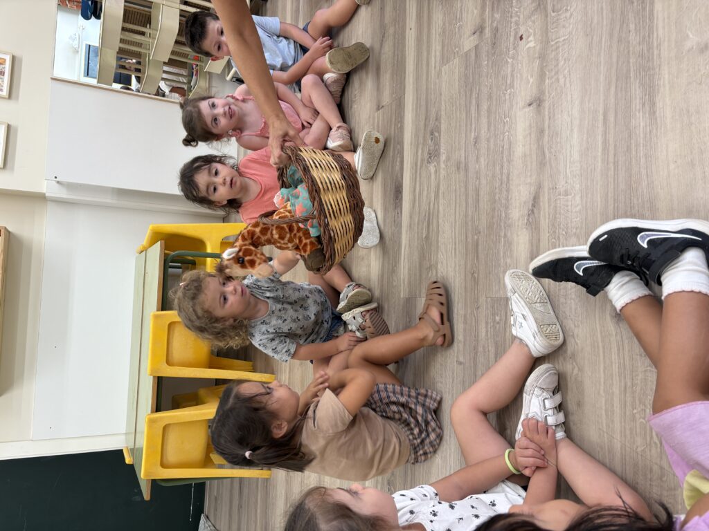 Els nens i nenes de la classe de les Balenes ens van regalar el nom i som la classe Girafes! També vam conèixer la nostra mascota, la girafa Taca i com l’estimem!!