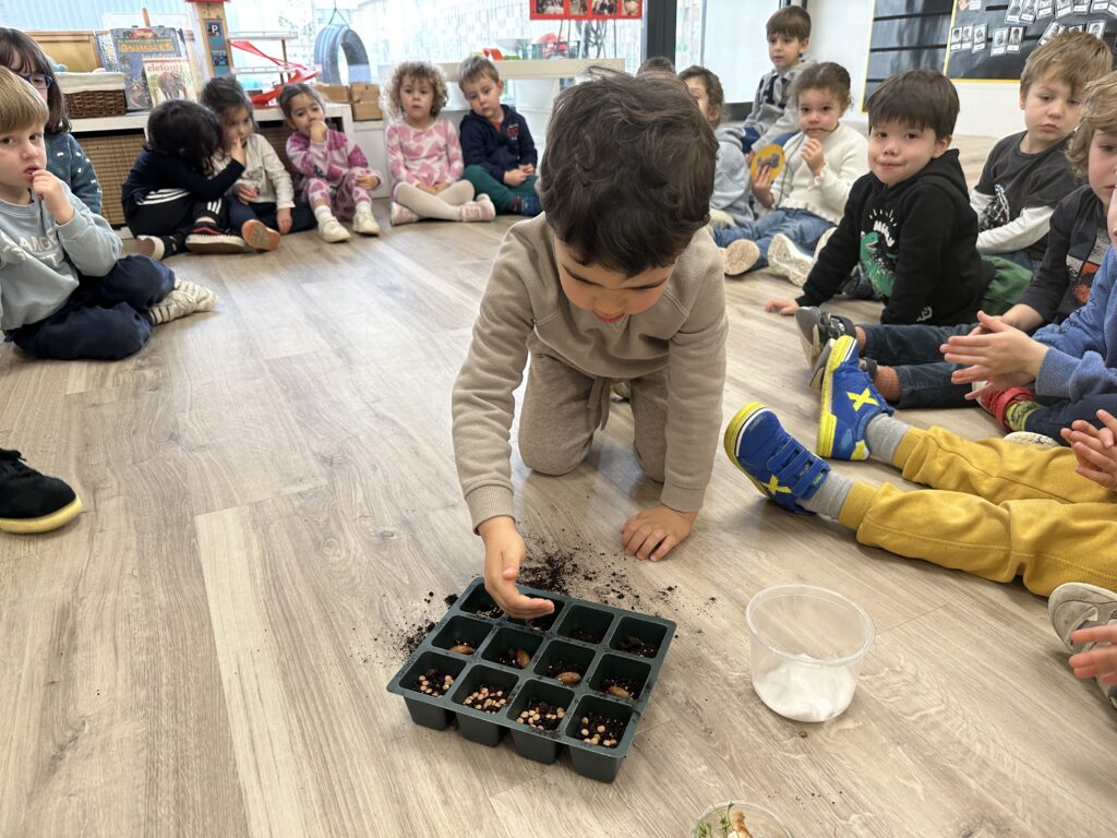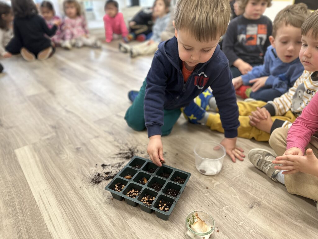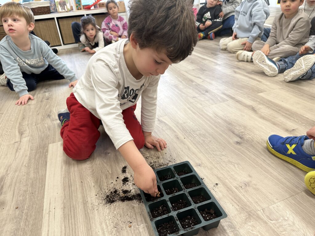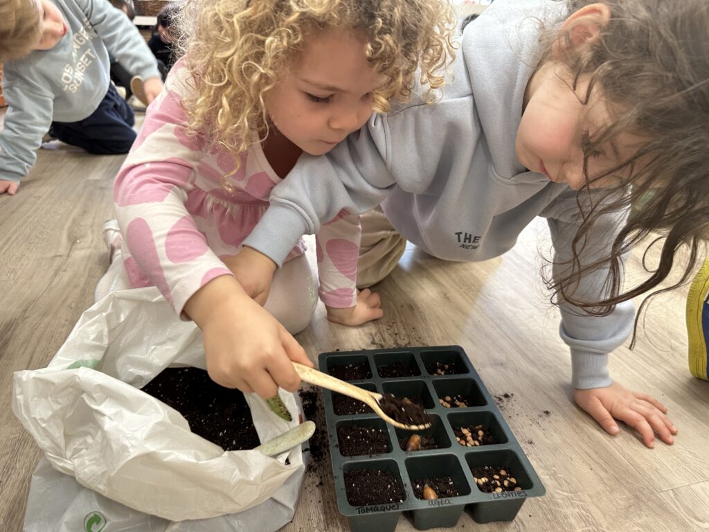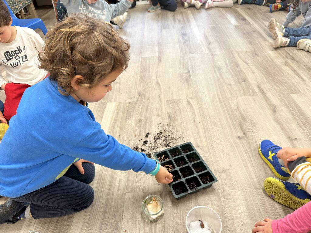 Així doncs… hem fet de pagesos i ens hem arremangat per omplir de terra el planter, posar les nostres llavors i regar-ho bé!