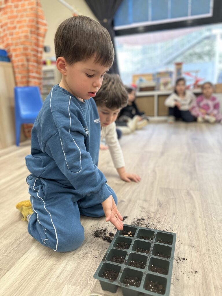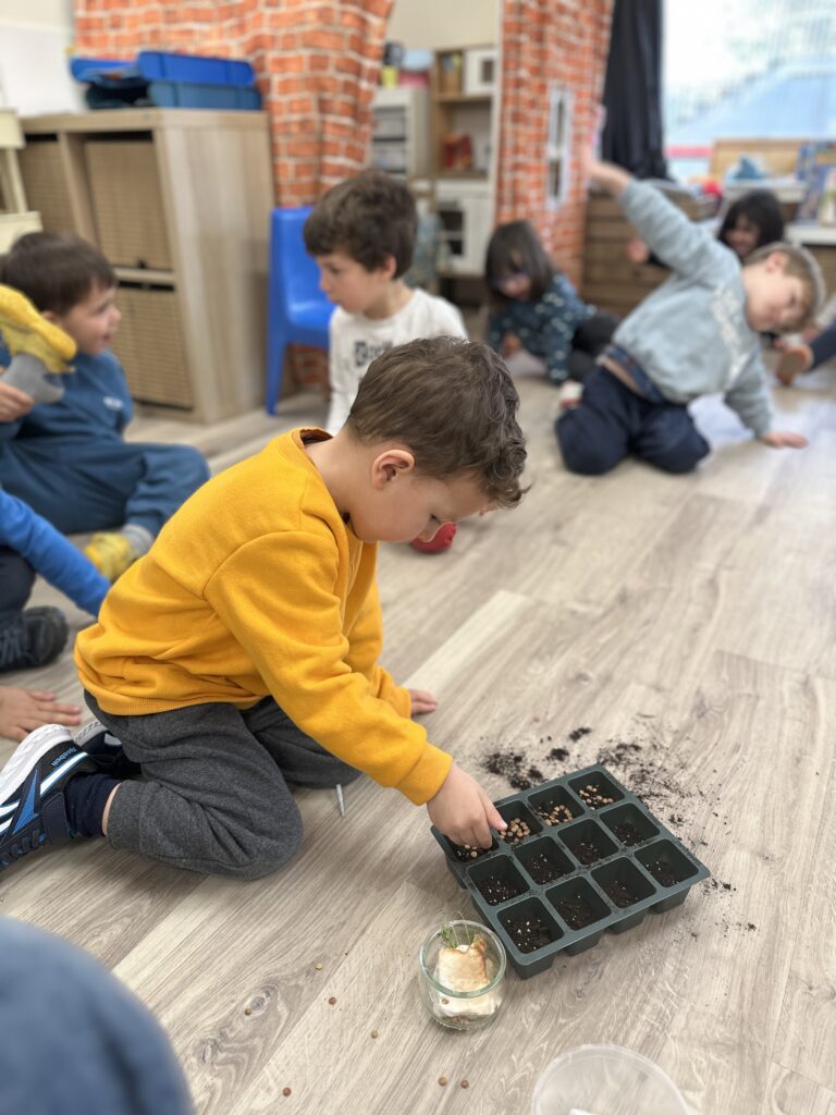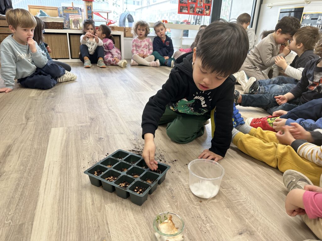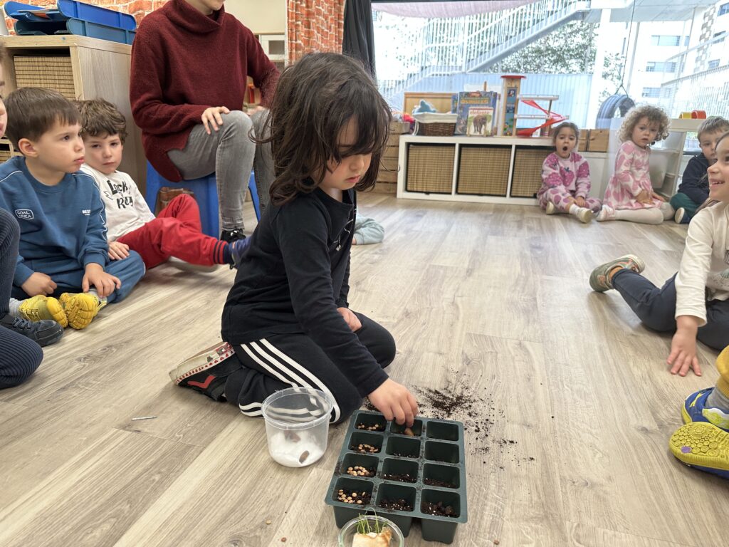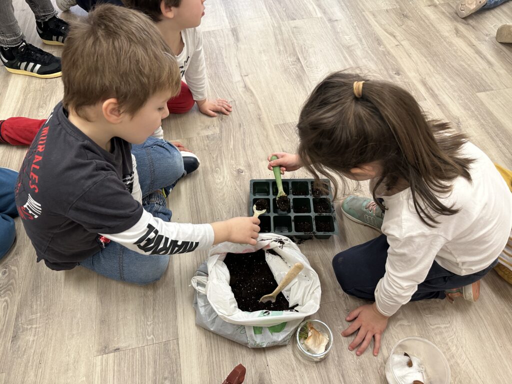 Així doncs… hem fet de pagesos i ens hem arremangat per omplir de terra el planter, posar les nostres llavors i regar-ho bé!