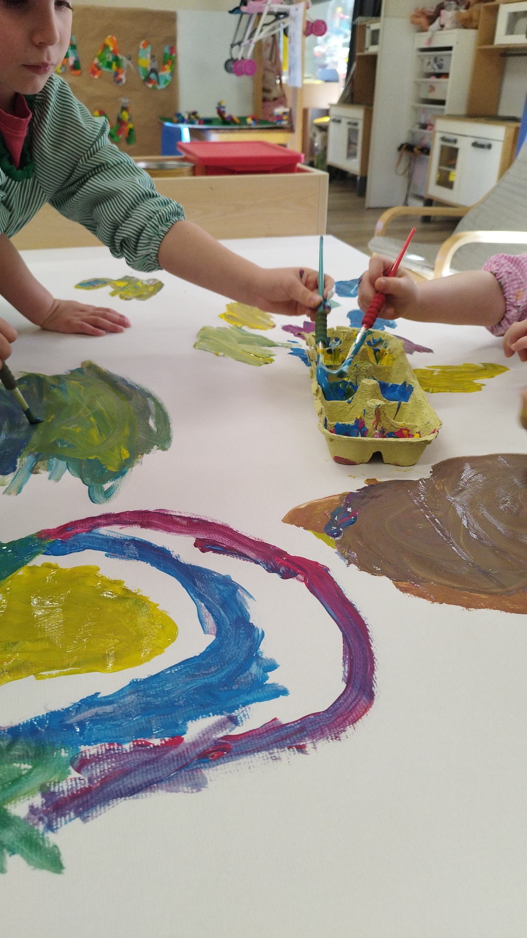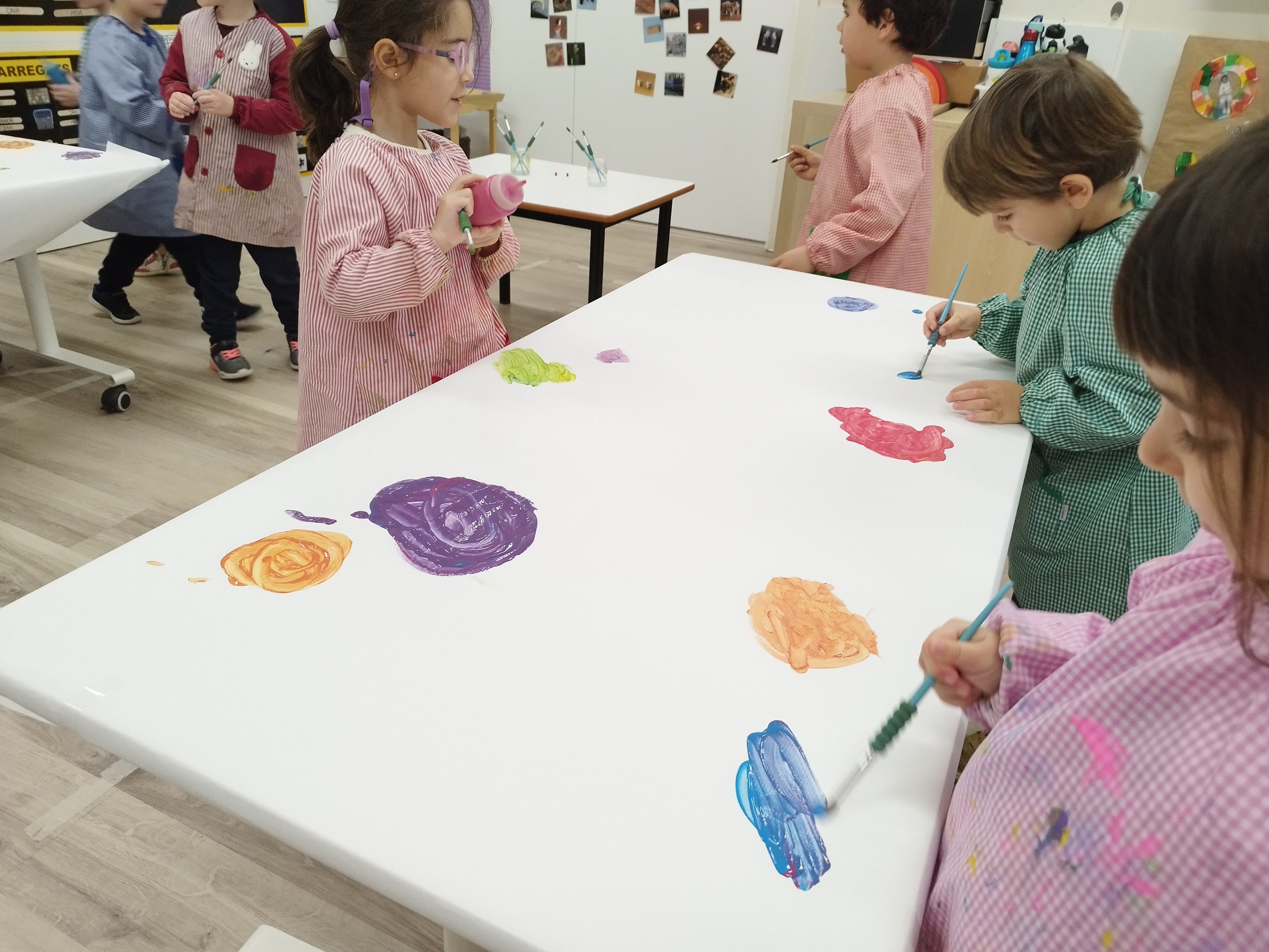 La Rosi i l’Eva ens van portar un conte màgic! Vam veure que barrejant 2 colors diferents en surt un de nou, així que molt emocionats ens vam posar la bata per experimentar-ho nosaltres mateixos.