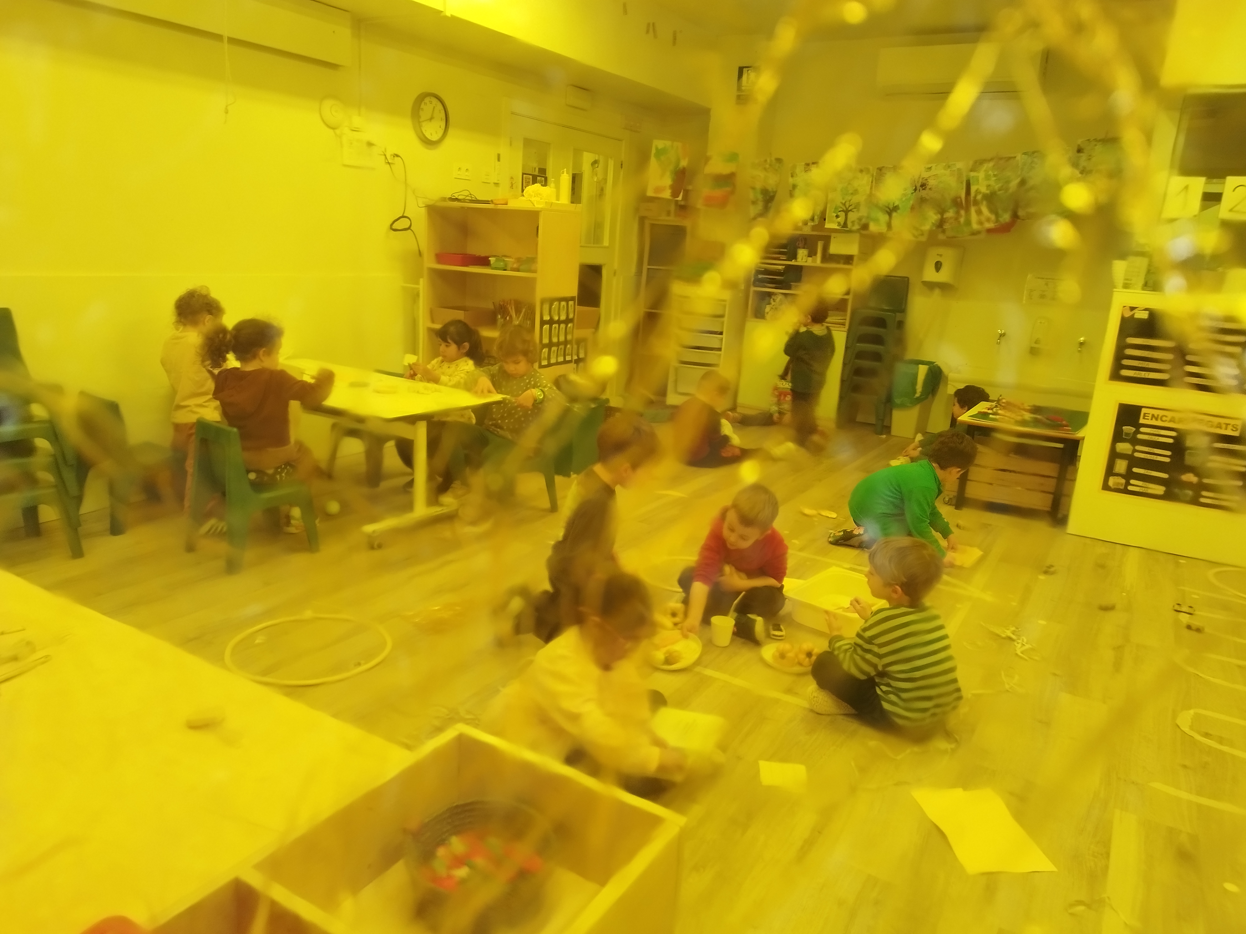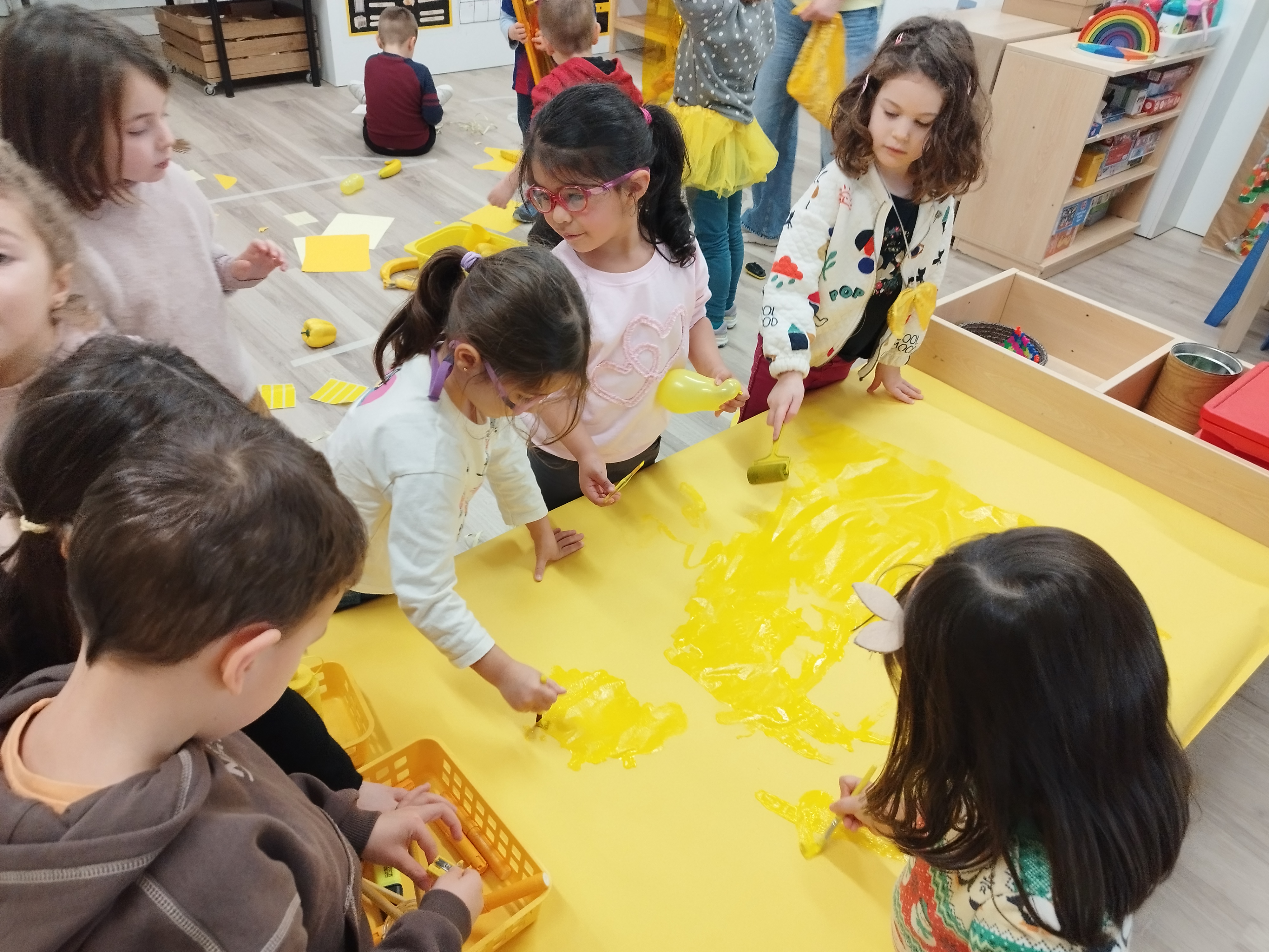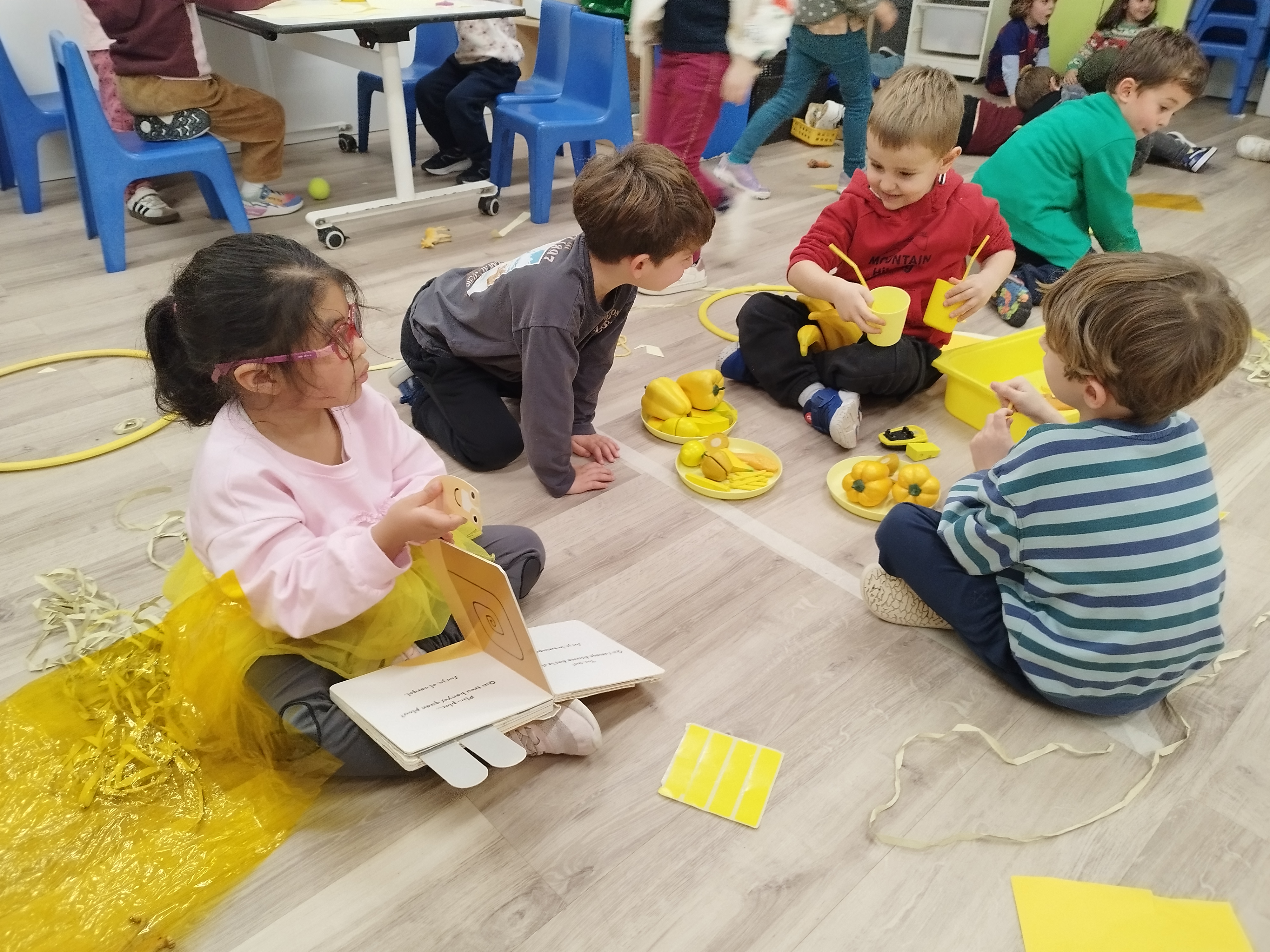 Fa unes setmanes vam tenir una súper sorpresa! Quan vam arribar del pati, vam trobar un munt de coses grogues a la nostra classe: pintura, plastilina, papers, menjar… fins i tot l’Orellotes portava un mocador groc!
