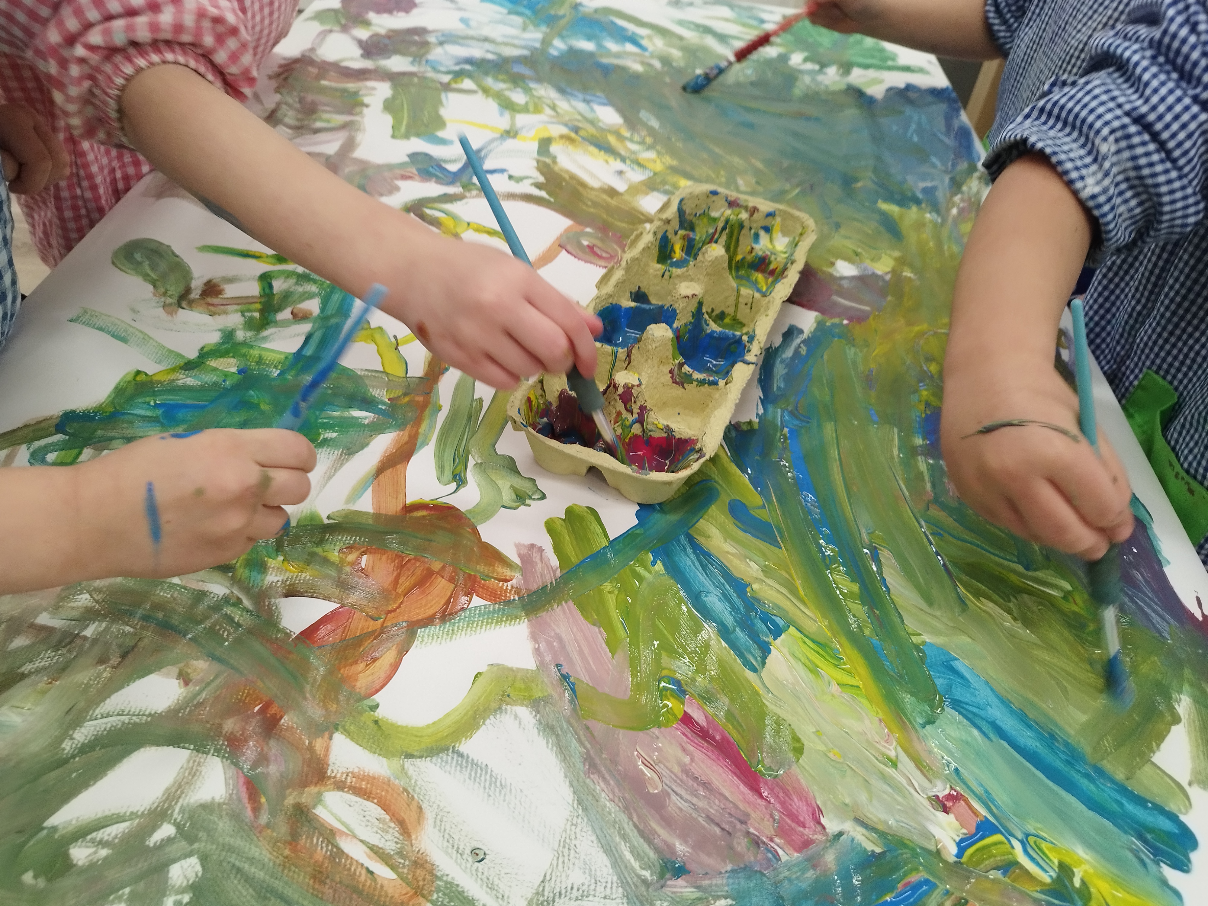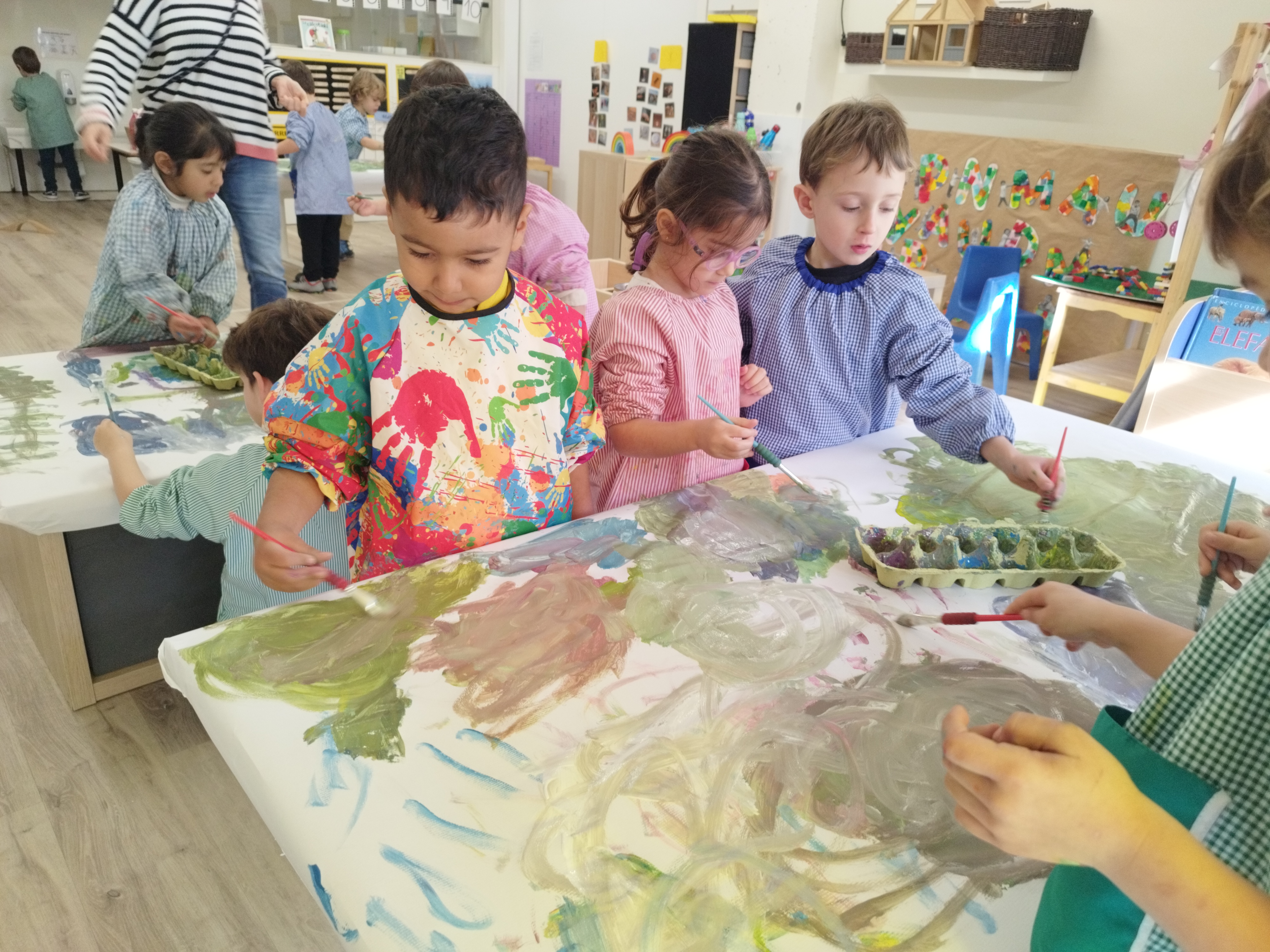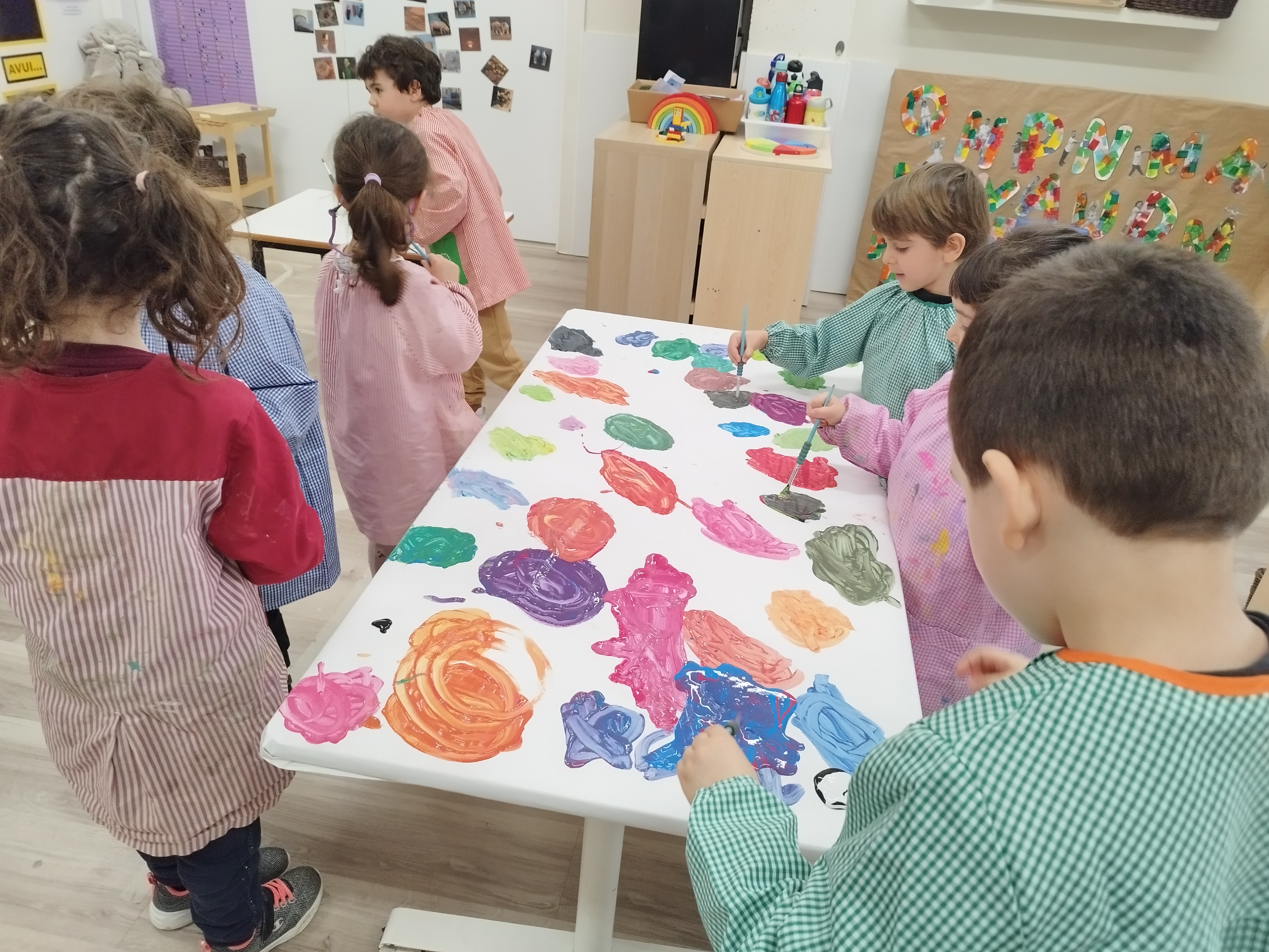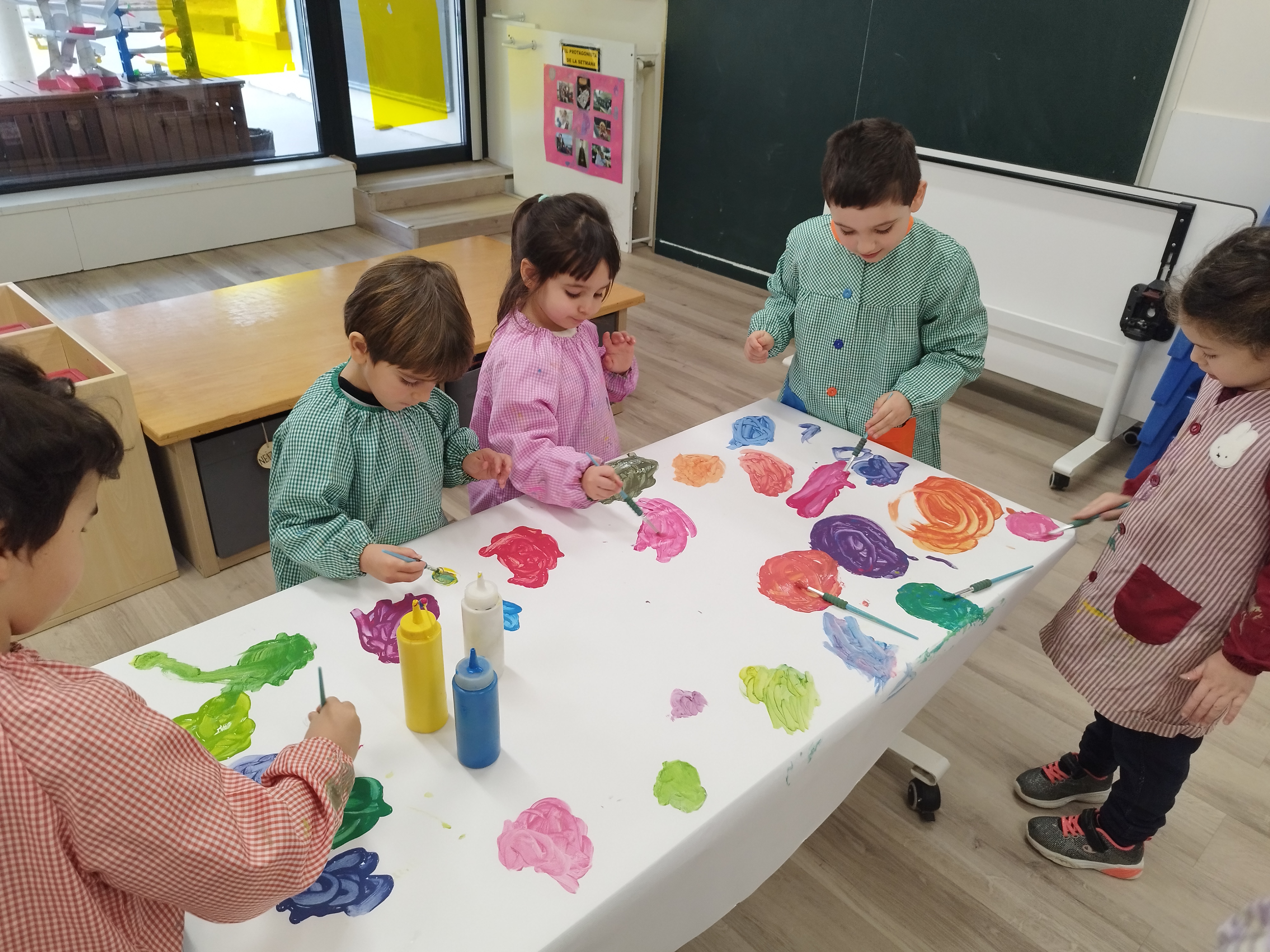 La Rosi i l’Eva ens van portar un conte màgic! Vam veure que barrejant 2 colors diferents en surt un de nou, així que molt emocionats ens vam posar la bata per experimentar-ho nosaltres mateixos.